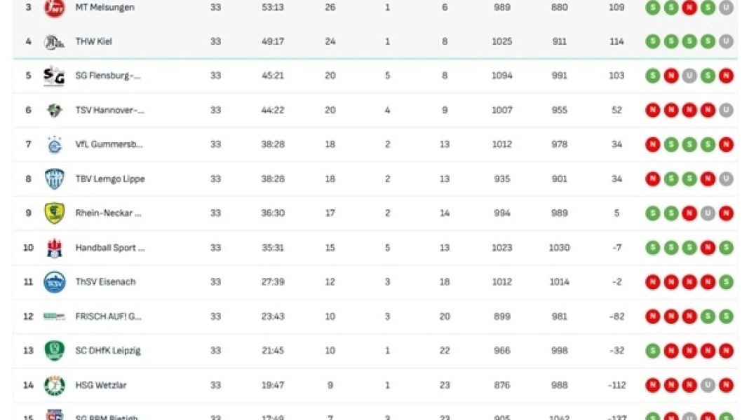 독일 핸드볼 분데스리가, MT 멜중엔이 렘고 리페와 무승부로 선두 경쟁 탈락