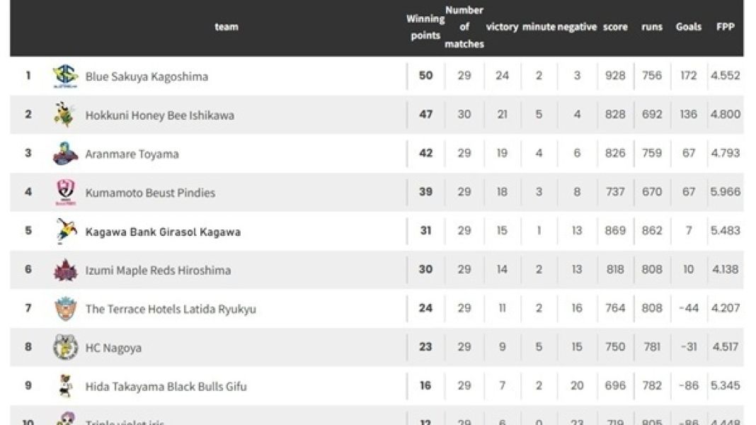 [순위] 일본 여자 핸드볼 리그 H, 기라솔 카가와 5위 도약하며 플레이오프에 성큼