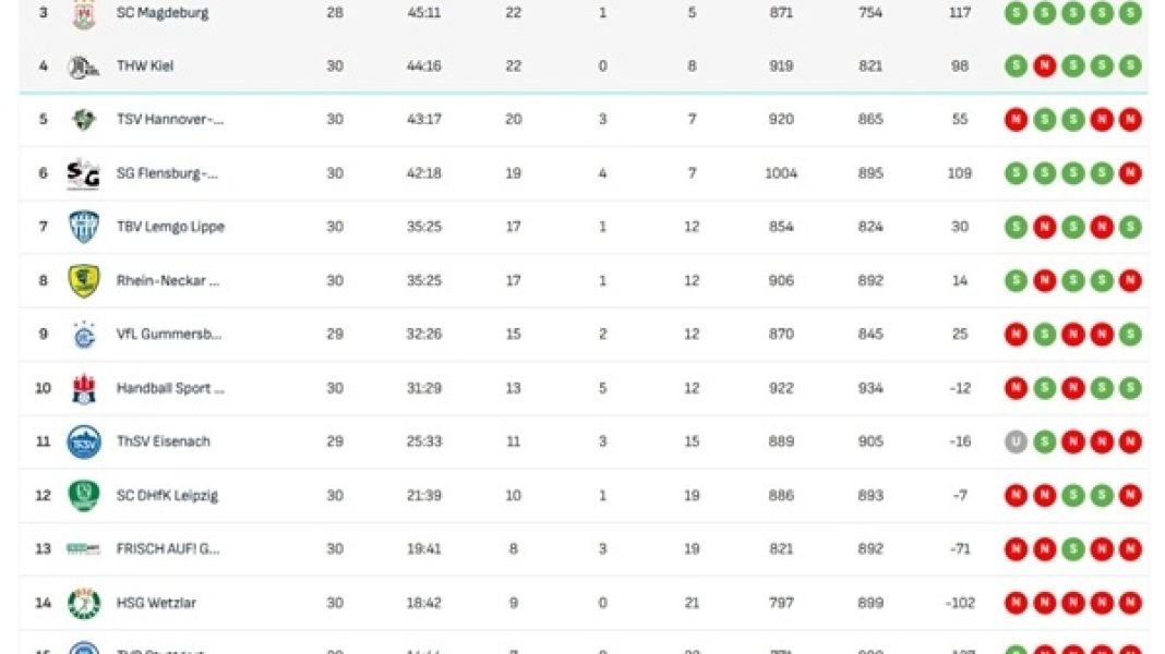 [순위] 독일 남자 핸드볼 분데스리가, 선두권 연승으로 치열한 싸움 이어가