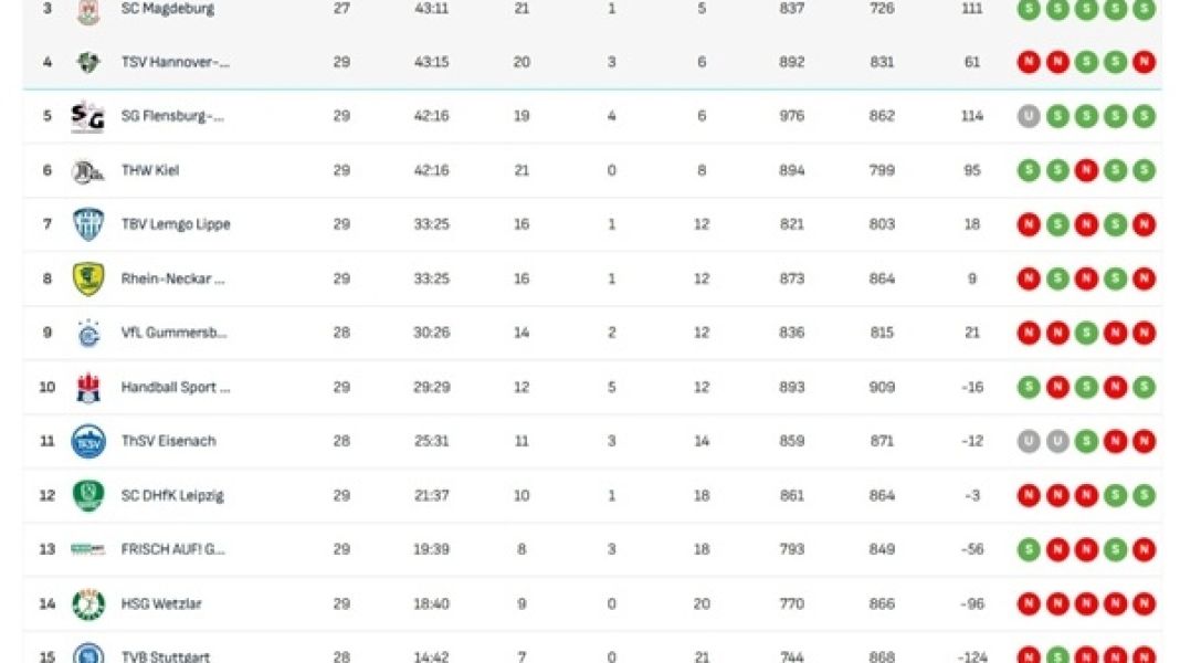 [순위] 독일 남자 핸드볼 분데스리가, 베를린과 멜중엔 승점 차 없는 선두 경쟁